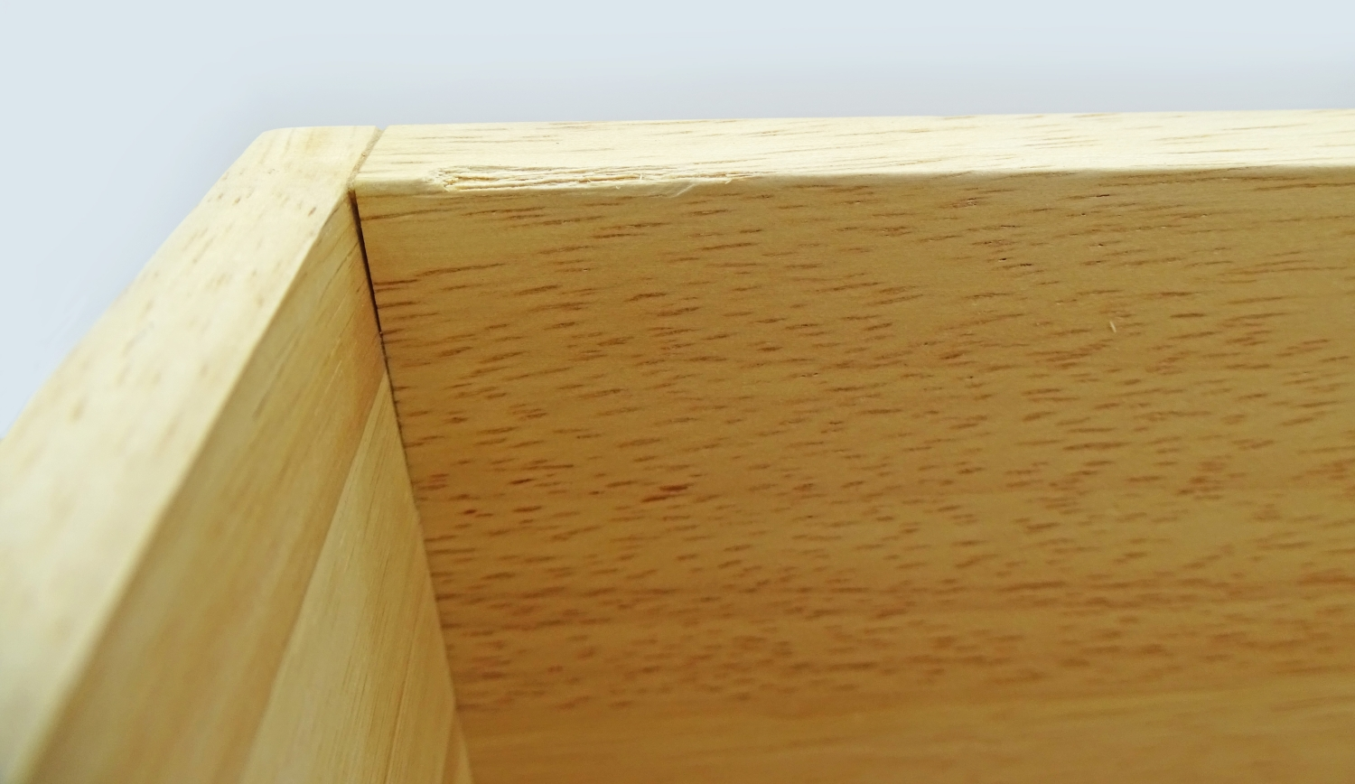 B-Ware – sehr guter Zustand: Es handelt sich um unbenutzte B-Ware. Der Brotkasten weist an einer Innenkante einen kleinen Materialfehler auf. Dort ist etwas Holz abgesplittert, der Zustand kann den Fotos entnommen werden.