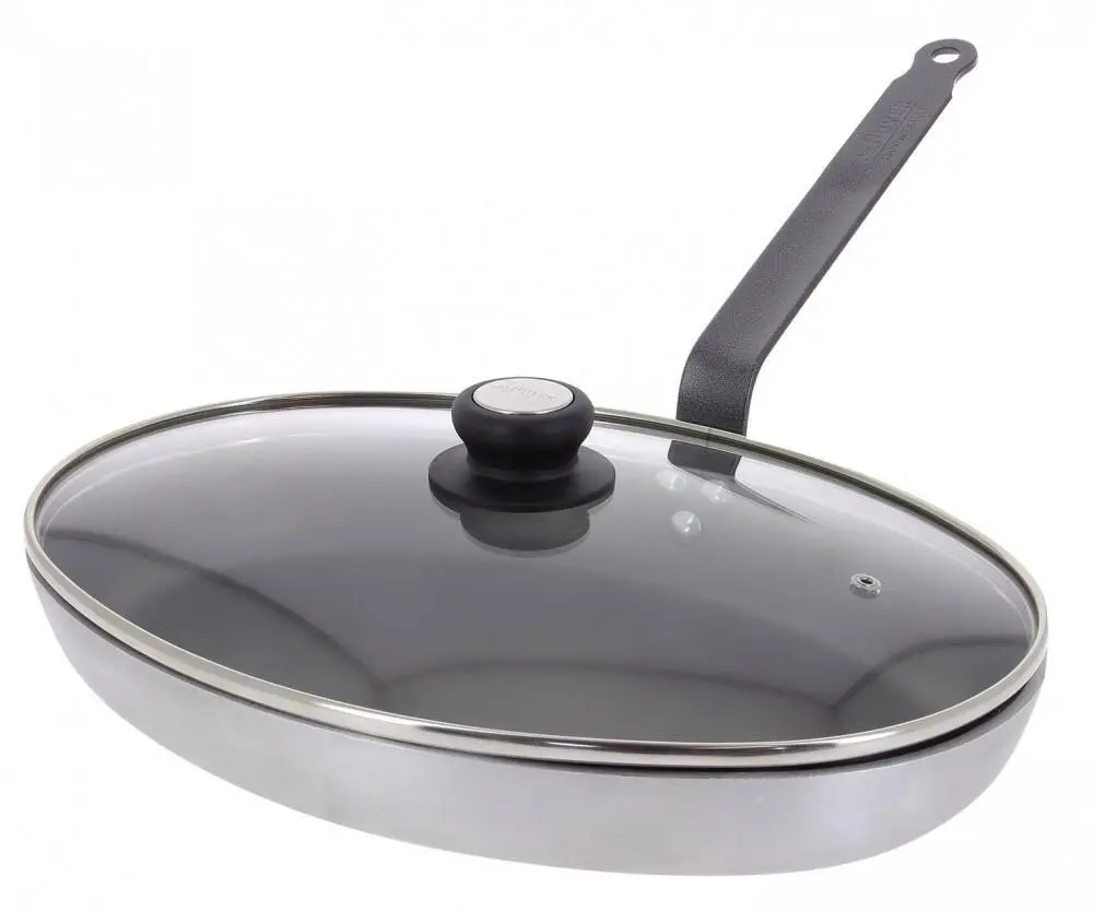 de Buyer Antihaft-Fischpfanne Choc Resto Induction mit Glasdeckel, 36 cm. Die ideale Bratpfanne zum Zubereiten von Fischfilets und Eierspeisen.