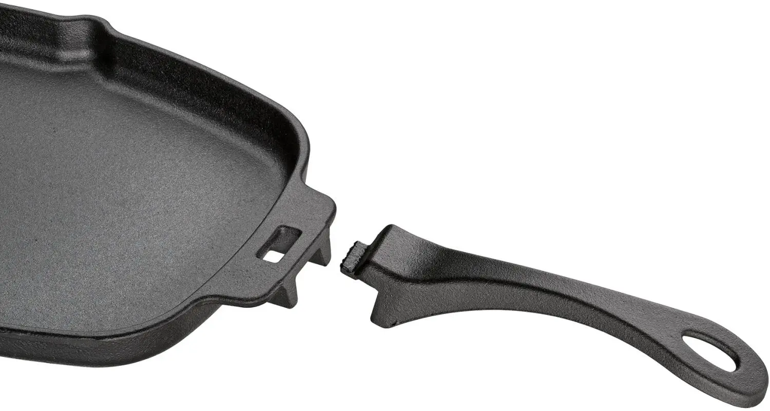 Küchenprofi Servierpfanne mit abnehmbarem Griff und Holzbrett. Ideale Servierpfanne zum Zubereiten kleiner Speisen und Beilagen auf dem Grill und im Ofen.