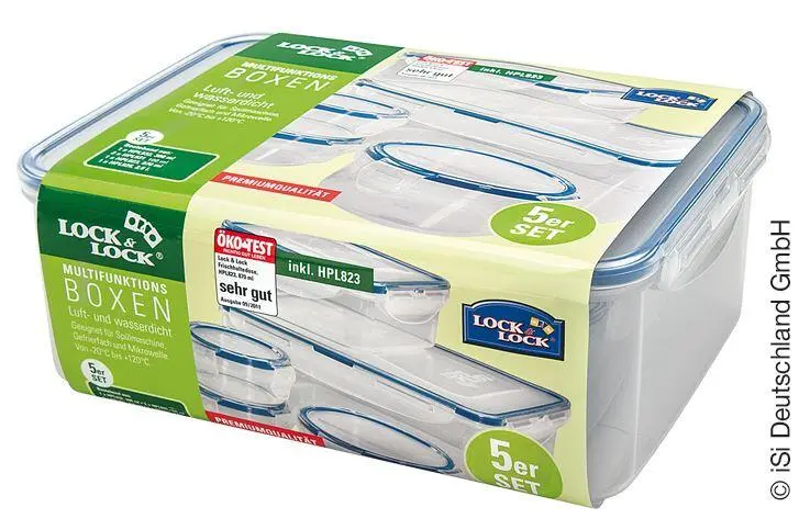 - Set bestehend aus 5 Lock & Lock Frischhalteboxen mit 2 x 200ml, 1 x 300ml, 1 x 870 ml 1 x 2,6 L Fassungsvermögen