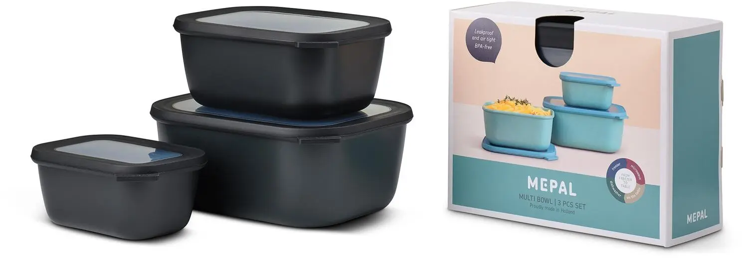 Mit diesem Mepal Multischüssel-Set Cirqula hast Du einen wahren Alleskönner im Haus. Speisen aufbewahren, einfrieren, aufwärmen und am Tisch servieren – alles in ein und derselben Schüssel. Die Schüsselgrößen in diesem Set sind: 750 ml, 1500 ml und 3000 ml.