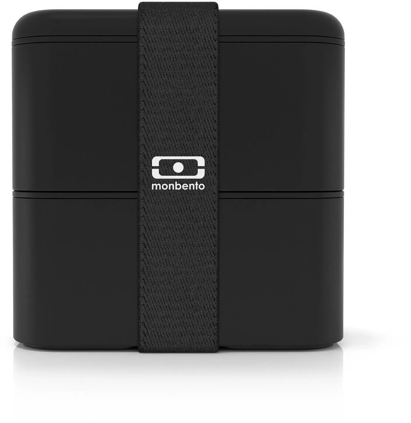 Monbento MB Square Bento-Box onyx-schwarz, made in France. Moderne Lunchbox im quadratischen Design. Mit zwei separaten Fächern und Transportbändern. Ideal für Sandwichs und größere Portionen.