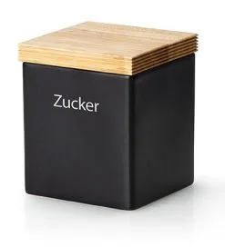 Continenta Vorratsdose Quadratisch Mit Holzdeckel, Matt Schwarz