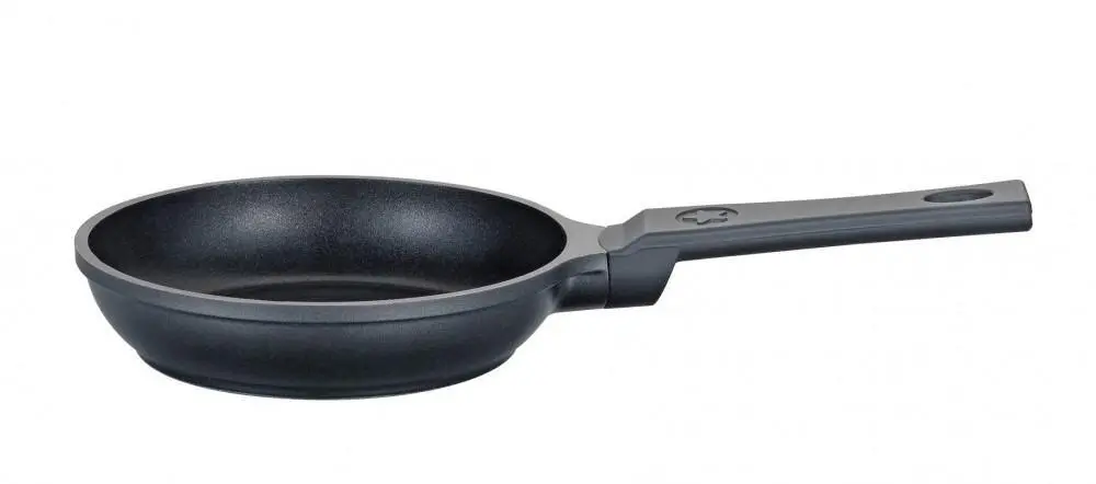 Spring Bratpfanne Vulcano Mini in schwarz. Der perfekte Begleiter für kleine Portionen wie Spiegelei, Pfannkuchen und zum Rösten von Zwiebeln, Speckwürfeln und Pinienkernen.