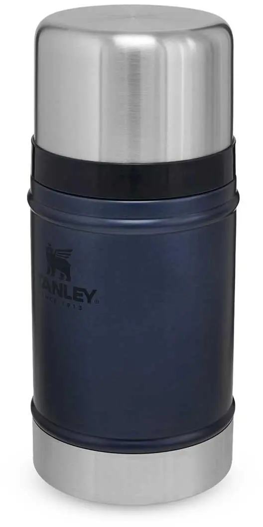 Der praktische Stanley CLASSIC FOOD CONTAINER ist ein toller Begleiter für unterwegs. Durch die große Öffnung mit 7 cm Durchmesser lassen sich sowohl kalte als auch warme Speisen bequem einfüllen. Auch die Reinigung des Containers geht leicht von der Hand. Der doppelwandige 18/8 Edelstahl-Container bietet eine gute Isolation und hält 0,7 Liter bis zu 15 Stunden heiß oder 18 Stunden kalt. Der Deckel hat ein Fassungsvermögen von 0,354 Liter und kann als Gefäß verwendet werden. Eine Lackierung in Nightfall blau sorgt für eine ansprechende Optik.