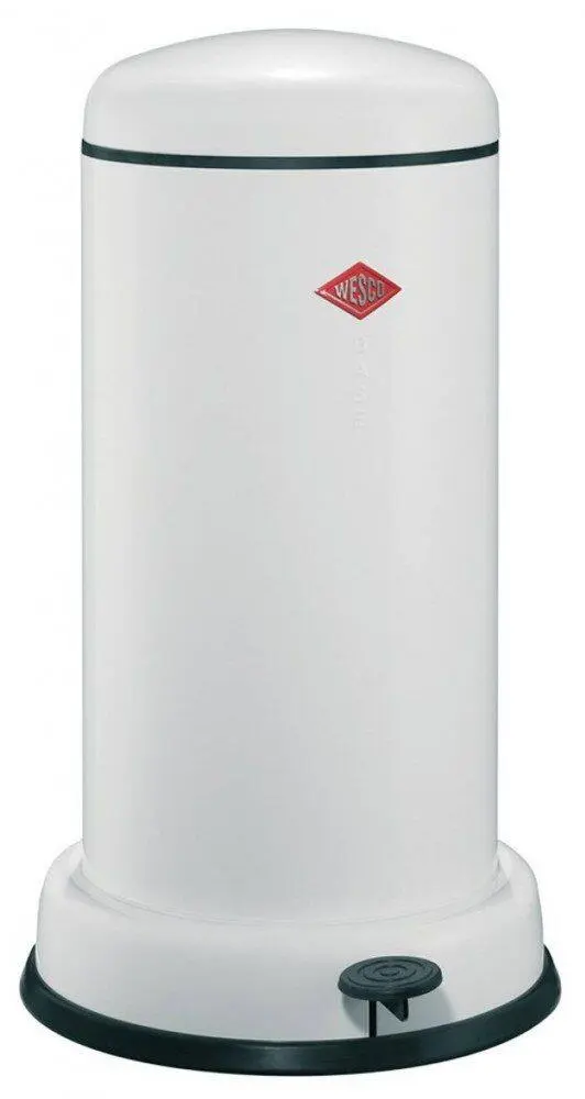 Wesco Baseboy 20 Liter mit Dämpfer in weiß. Tretabfalleimer im Stil der 50er Jahre. Mit standfestem Sockel und robuster Tretmechanik.