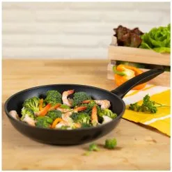 Woll nowo Titanium vereint die Vorzüge des Woll Pfannen-Klassikers TitanPlus mit einem spürbar verringerten Gewicht. Für beste Kochergebnisse sorgen der ca. 10 mm starke Pfannenboden aus spannungsfreiem Aluminium-Kokillen-Guss und die dauerhaft beständige und schnittfeste Antihaftversiegelung aus Hightech-Titanium. Optional abnehmbare Stiele machen die Woll Pfannen der nowo-Serie obendrein zur backofentauglichen Auflaufform.